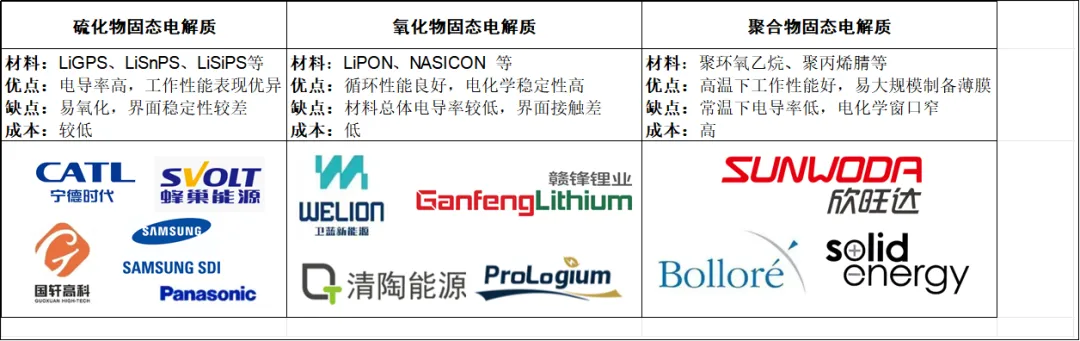 圖1 固態(tài)電池技術(shù)路線及代表企業(yè)示意圖