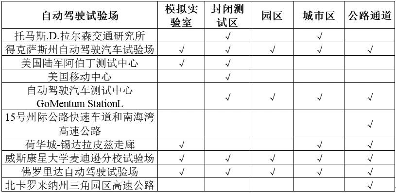 表1 美國自動駕駛試驗場測試場景構成