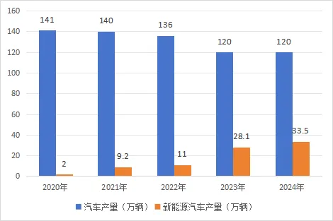 圖1 2020—2024年武漢市汽車產(chǎn)量情況