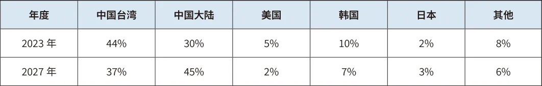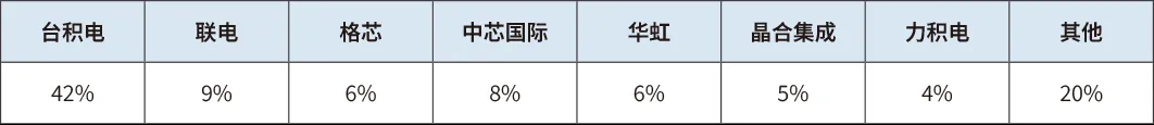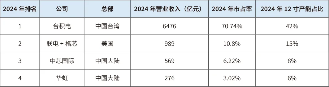 表5 2024年中美及中國(guó)臺(tái)灣各集成電路代工企業(yè)12寸代工產(chǎn)能占比