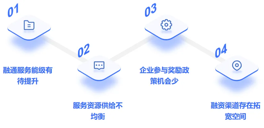 產業園區服務功能局限,過度依賴傳統銀企對接模式,股權融資、政策性融資工具(如專精特新專項貸)等多元渠道整合能力不足,融資路徑狹窄;信息匹配低效,未建立專精特新企業技術價值評估與金融機構風險偏好動態匹配的數字化平臺,導致輕資產、高成長型企業難以突破銀企之間“技術看不懂、風險算不清”的信息鴻溝。