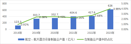 圖1 近5年北京航空、航天器及設備制造業產值及占比情況