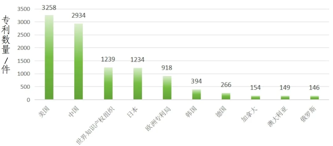 圖1 eVTOL領域專利申請量排名前十的國家和組織(截止到2024年)