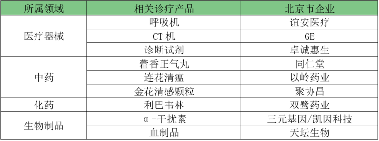 圍繞疫情防控涉及到的已有產(chǎn)品,短期需求激增,生產(chǎn)供應(yīng)力度加大。本市醫(yī)藥健康產(chǎn)業(yè)門類相對齊全、技術(shù)優(yōu)勢突出、產(chǎn)品質(zhì)量較好,國家衛(wèi)健委《新型冠狀病毒肺炎診療方案》推薦的多項(xiàng)藥品及器械在本市均有企業(yè)生產(chǎn),數(shù)十家重點(diǎn)企業(yè)的核心產(chǎn)品與新冠肺炎診斷、輔助治療等環(huán)節(jié)高度相關(guān),且在國內(nèi)有較高影響力,因此疫情期間需求旺盛。如,中藥方面涉及以嶺藥業(yè)的專利品種連花清瘟、同仁堂的藿香正氣丸等重點(diǎn)品種;化藥方面涉及雙鷺的利巴韋林等廣譜抗病毒藥物;器械方面涉及GE醫(yī)療(CT機(jī)在全國三甲醫(yī)院市場份額達(dá)80%左右);生物制品方面涉及三元基因的α-干擾素、天壇生物的血制品等。