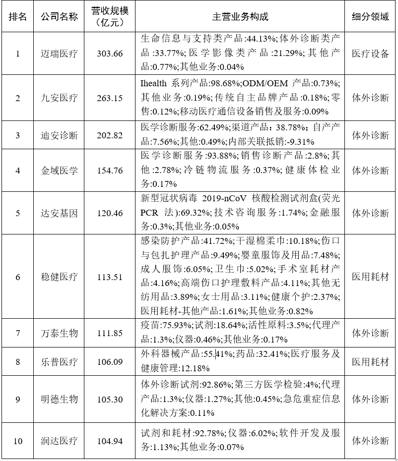 表1  2022年我國醫(yī)療器械上市企業(yè)營收規(guī)模TOP10