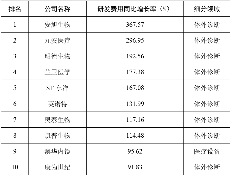 表3  2022年研發(fā)費(fèi)用同比增長率TOP10