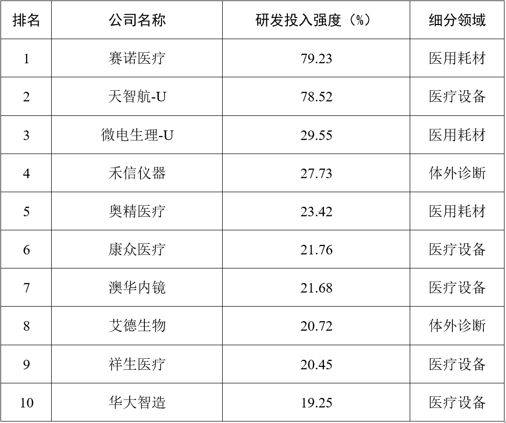 表4  2022年研發(fā)投入強(qiáng)度TOP10
